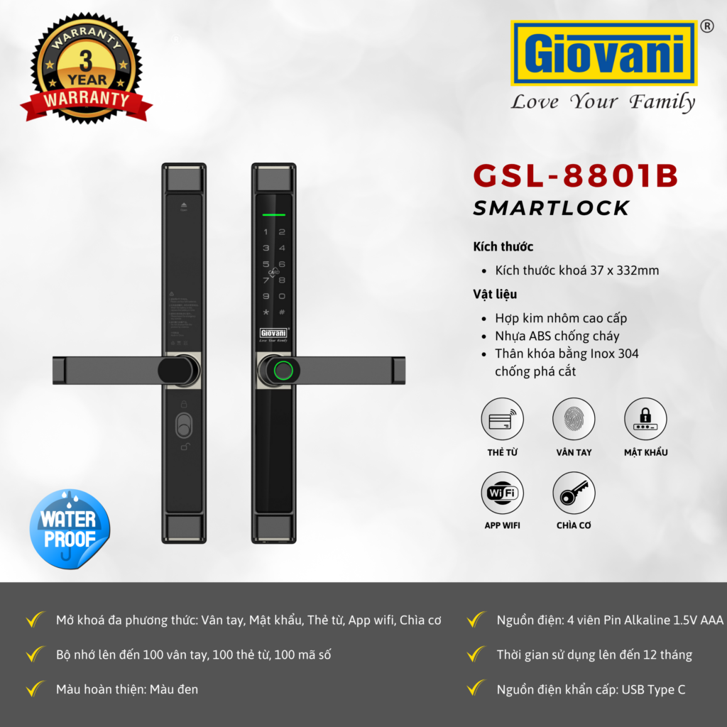 Khóa Thông Minh Giovani GSL-8801B: Bảo Mật Tối Đa, Sang Trọng Vượt Thời Gian!