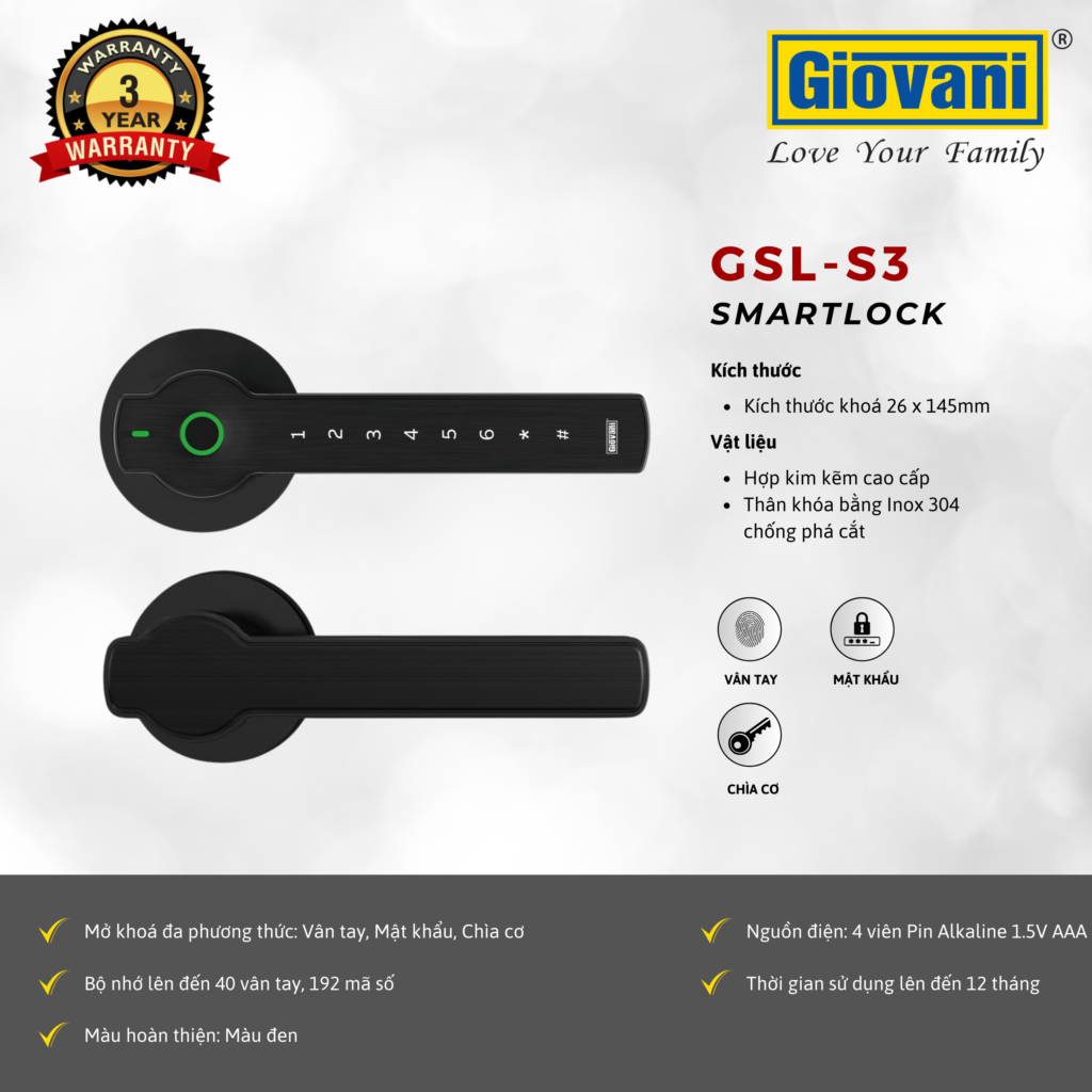 Khóa Vân Tay Thông Minh GSL-S3: Bảo Vệ Ngôi Nhà Hiện Đại, Tiện Nghi Vượt Trội