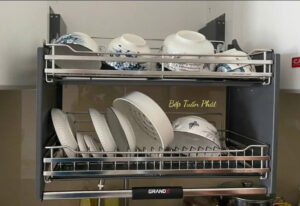 Giá bát đĩa nâng hạ 2 tầng nan Oval SUS304
